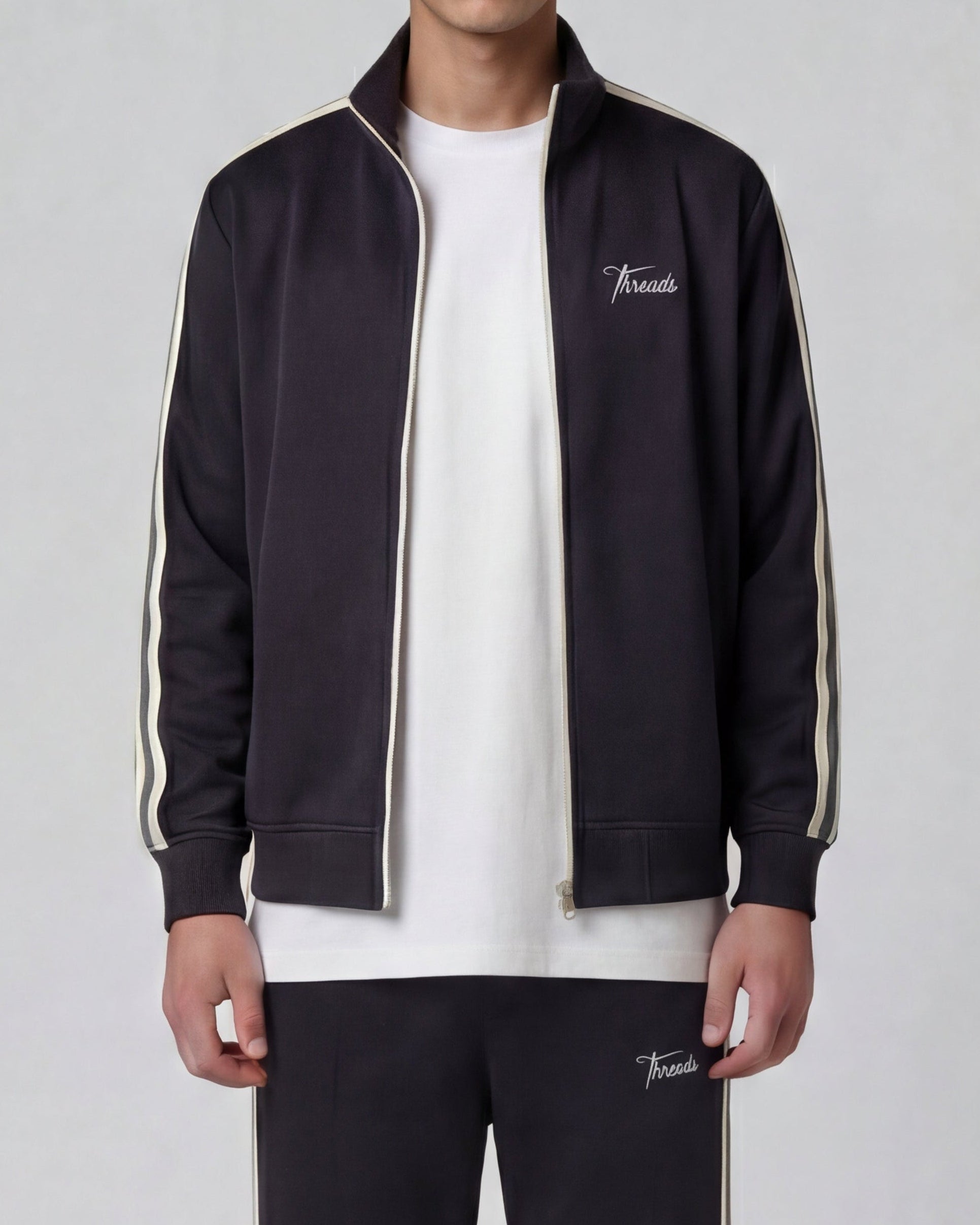 The Classic Track Jacket is a clean, track-led layer with a relaxed silhouette and subtle contrast panelling.